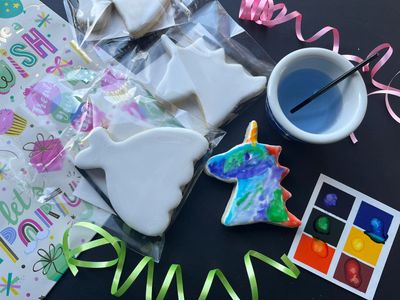We are excited to be able to provide a variety of cookie-cutter options for customers to choose from, in a certain amount of numbers and packaged with little brushes and edible paint.